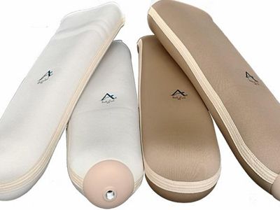 硅膠內(nèi)襯套的延展性,可以溫和柔軟的緊緊裹住肢體截?cái)嗵?,起到保護(hù)殘端皮膚組織的作用,防止了斷肢在假體腔內(nèi)的摩擦,降低乃至清除部分接觸壓力,給皮膚敏感區(qū)一個(gè)舒服的軟膠墊。因而,徒步時(shí)能夠顯著減輕肌膚表層受的摩擦不適,因?yàn)楣枘z墊把一些應(yīng)力從肌膚處傳送到硅膠內(nèi)襯套的外面,變?nèi)趿送刺酆蜌埗颂幖∧w損壞,這類(lèi)柔韌度很好的硅膠內(nèi)襯套會(huì)使高位截肢者覺(jué)得十分舒服。