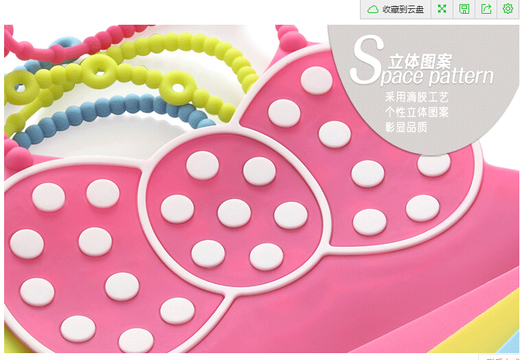 而雙色硅膠圍嘴和單色硅膠圍嘴有著價(jià)值和工藝的不同,雙色圍嘴采用二次成型,從成本和人工考慮,成本直接增加兩倍,而且從工藝上面來(lái)說(shuō),雙色比單色要復(fù)雜的多,那雙色硅膠圍嘴比單色有哪些好處呢?首先,外觀上,雙色圍嘴外觀是以兩種顏色并存,而且是一個(gè)整體結(jié)構(gòu),外觀顏色鮮艷,給人視覺(jué)沖擊特別的大,特別是寶寶的視覺(jué)沖擊。從結(jié)構(gòu)上,沒(méi)有強(qiáng)大的外力和人為原因,無(wú)法將其顏色分開(kāi),即使顏色分開(kāi),那圍嘴的也失去那原本的使用價(jià)值。從價(jià)值上,雙色圍嘴采用二次成型,整個(gè)過(guò)程全人工操作,從意義來(lái)說(shuō),賦予了人為i的理念和思想,每一個(gè)硅膠雙色圍嘴都是工人辛勤的勞作,每一個(gè)動(dòng)作都是極其的用心。