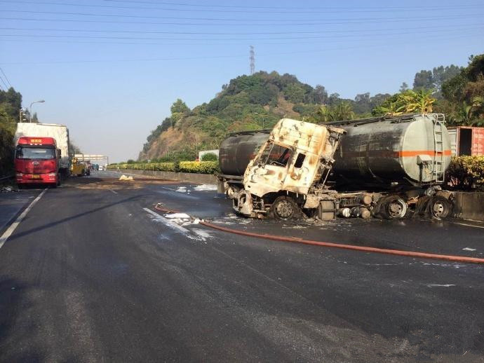 今天上午十一點左右從東莞想廣州方向到達(dá)虎門大橋虎門出現(xiàn)一起交通事故,由于我們想廣州方向,所以沒有受到影響,現(xiàn)場濃煙滾滾在虎門大橋向東行駛方向看到一輛載有類似化學(xué)物的油罐車碰到護(hù)欄發(fā)生起火,當(dāng)時的情況看來并未發(fā)生人員的傷亡,由于罐車橫向占據(jù)了幾條車道導(dǎo)致交通堵塞,后來在新聞上面看見經(jīng)過消防確認(rèn)存在甲醇泄漏現(xiàn)象,導(dǎo)致周圍居民投訴,出現(xiàn)嚴(yán)重的氣味,由于化學(xué)物品的嚴(yán)重泄漏,導(dǎo)致清理現(xiàn)象困難,為交通帶來擁堵。