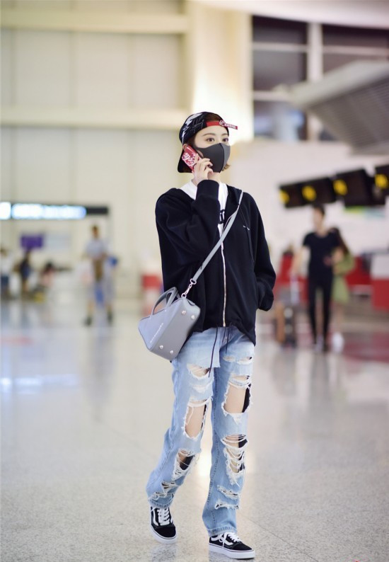 景甜寬松潮裝帥氣現(xiàn)身機場
