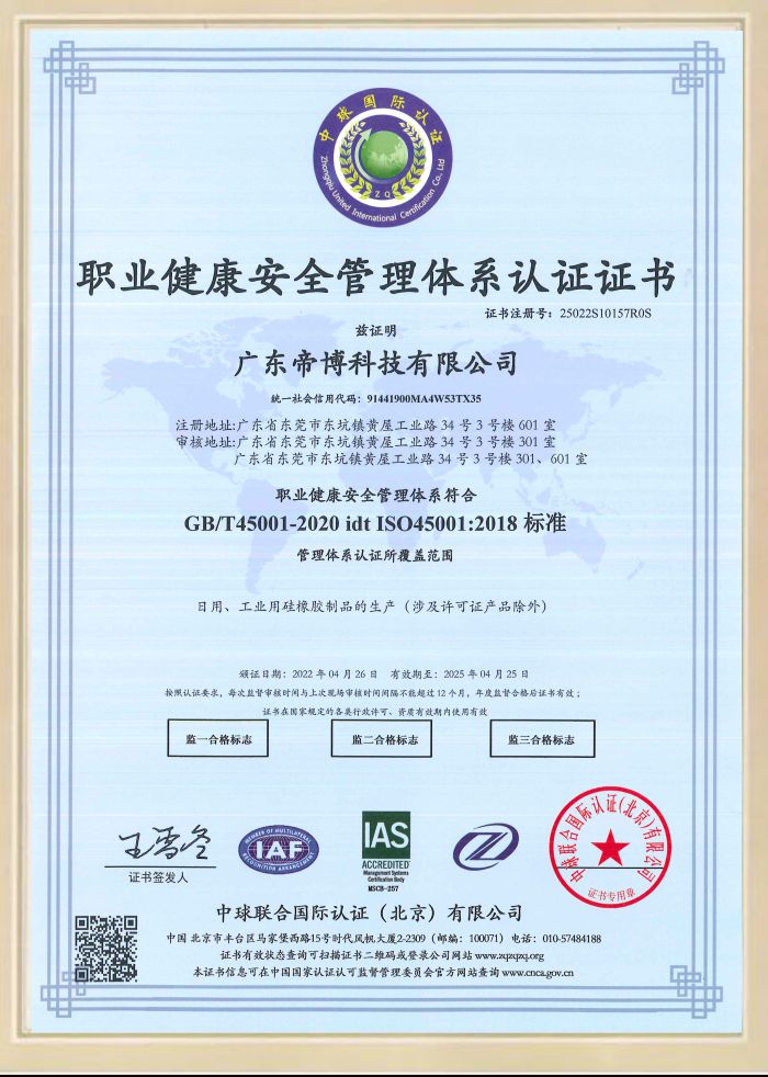 廣東帝博科技有限公位于2019年起施行每年檢測認(rèn)證報告,由于硅膠制品行業(yè)屬于環(huán)保安全行業(yè),客戶的需求以及反饋都決定我們的實力,目前我司已認(rèn)證ISO9001、ISO14001、ISO45001、迪士尼認(rèn)證、FDA、ROHS、LFGB、CPC等一系列檢測認(rèn)證