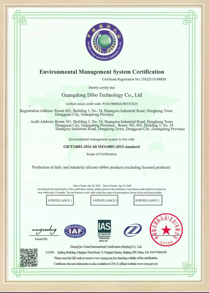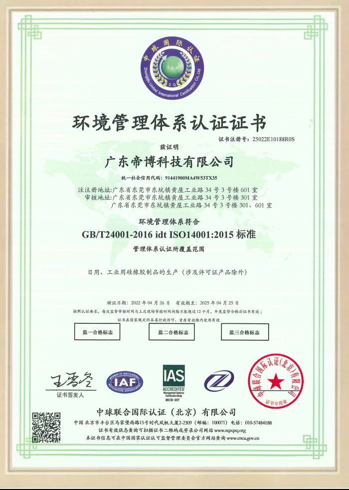 廣東帝博科技有限公位于2019年起施行每年檢測認(rèn)證報告,由于硅膠制品行業(yè)屬于環(huán)保安全行業(yè),客戶的需求以及反饋都決定我們的實力,目前我司已認(rèn)證ISO9001、ISO14001、ISO45001、迪士尼認(rèn)證、FDA、ROHS、LFGB、CPC等一系列檢測認(rèn)證
