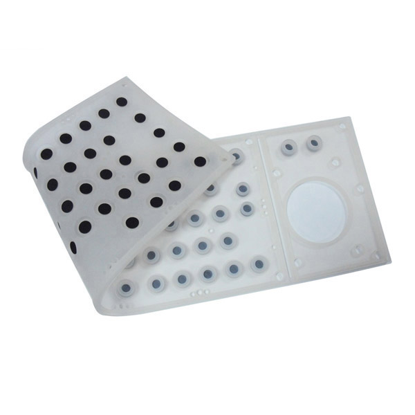 此硅膠鍵盤保護(hù)膜有多種款式,這是其中一件。這款硅膠鍵盤的特點是,硬度適中,手感極佳,方便使用;同時易于清洗,抗撕裂。產(chǎn)品表面噴有橡膠油,防塵效果好。